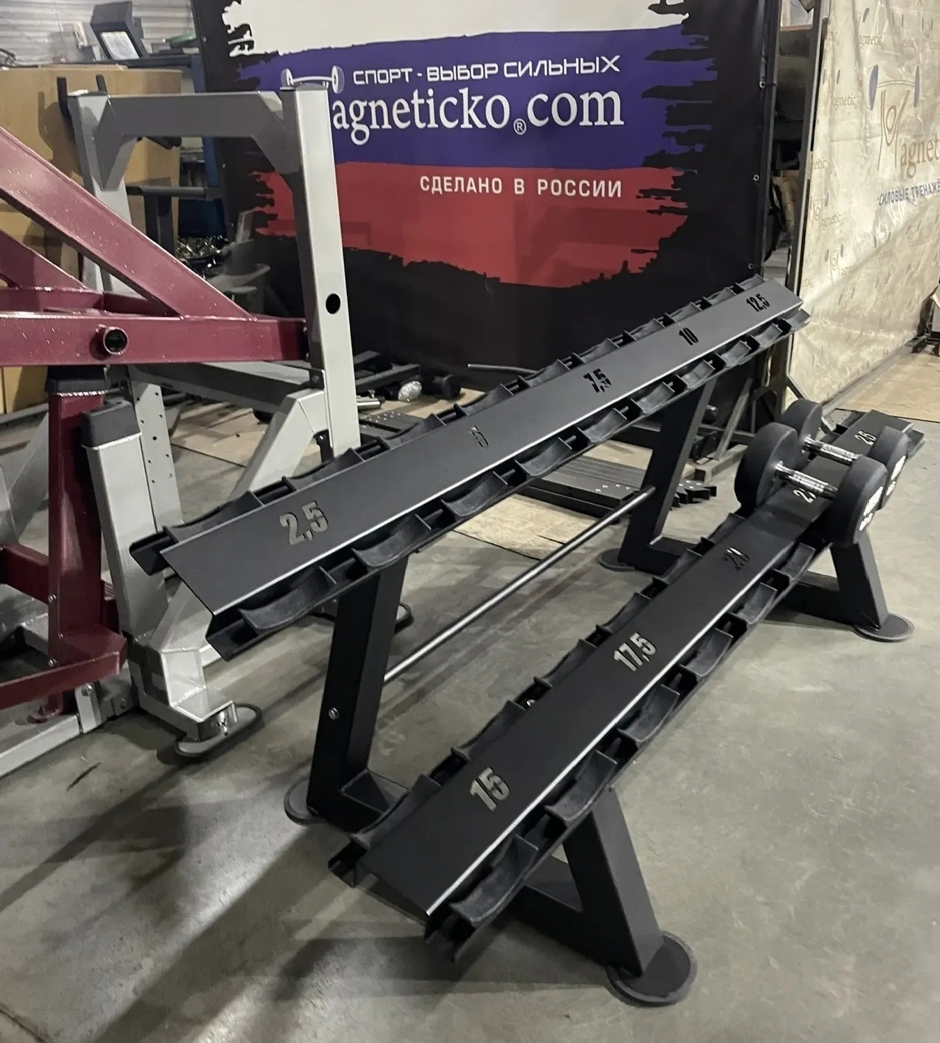 - Стойку можем адаптировать под гантели с длиной ручки 150 или 130мм